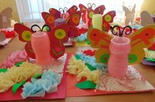 Сколько существует разных идей для подарков для мам. Перед восьмым марта в группах становиться радостнее от «распустившихся» цветов, которые изготовили для мам сами ребята, а вот ребята из подготовительной группы, со своими педагогами, Бондаренко И.П. и Шаровой Л.П. из стаканчик от йогурта изготовили необычные подарки – подставку для карандашей в виде бабочки.Правда, красиво! -