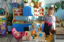 Все дети обожают игры. Особенно те, в которых они могут почувствовать себя взрослыми. К числу таких игрушек относятся сюжетно-ролевые игры. Они могут быть для совсем маленьких малышей от двух до трёх лет, как, например, сюжетно-ролевая игра "Семья". В ней малыш играет за маму и папу, наказывает и поощряет действия своего сына или дочери. Это очень увлекает ребёнка и развивает его речевые способности и моторику.Особенно девочкам нравиться накрывать на стол и приглашать гостей. Они с удовольствием застилают стол скатертью, сервируют его и вежливо приглашают гостей.В групповых комнатах, нашими педагогами созданы все условия, чтобы игра была интересной и увлекательной.