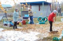 Сегодня педагогами детского сада был проведен субботник. В результате которого территория детского сада была очищена от опавшей листвы и прибран летний игровой инвентарь.