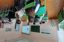 Укучылар ике командага бүленеп туган телебез- татар теленә багышланган төрле биремнәр үтәделәр.
