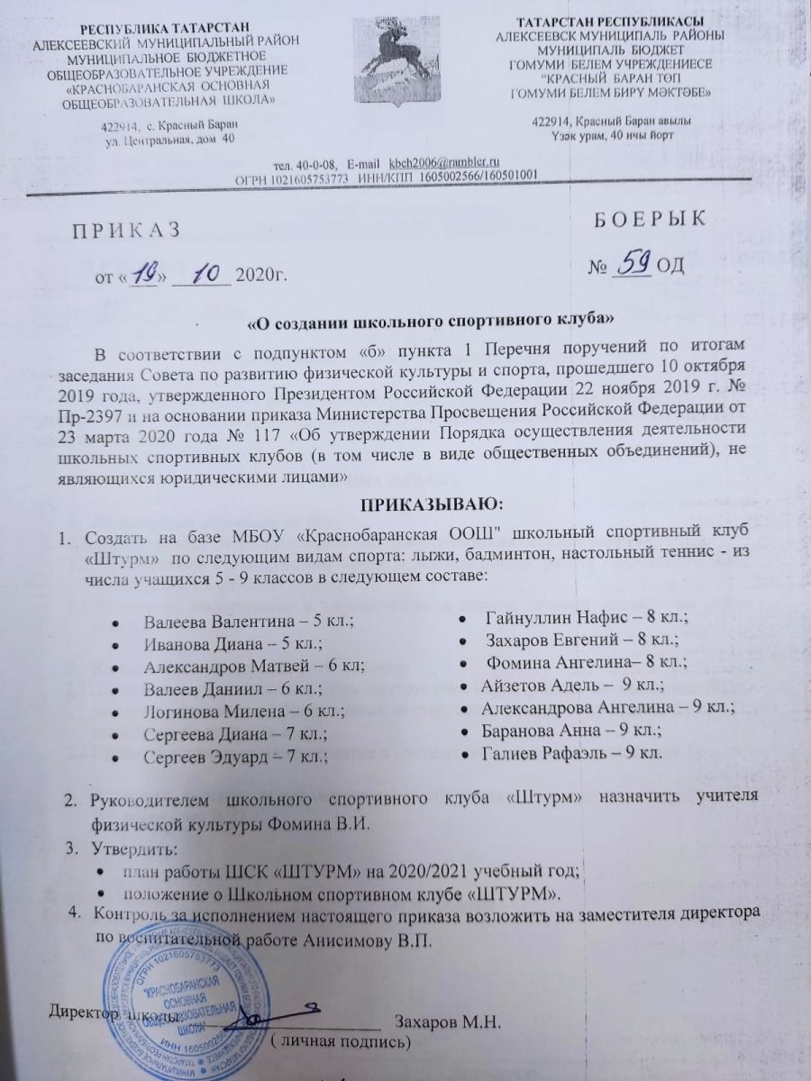 Муниципальное бюджетное общеобразовательное учреждение «Краснобаранская основная общеобразовательная школа» Алексеевского муниципального района Республики Татарстан/Татарстан Республикасы Алексеевск муниципаль районы Красный Баран төп гомуми белем бирү мәктәбе муниципаль бюджет гомуми белем бирү учреждениясе