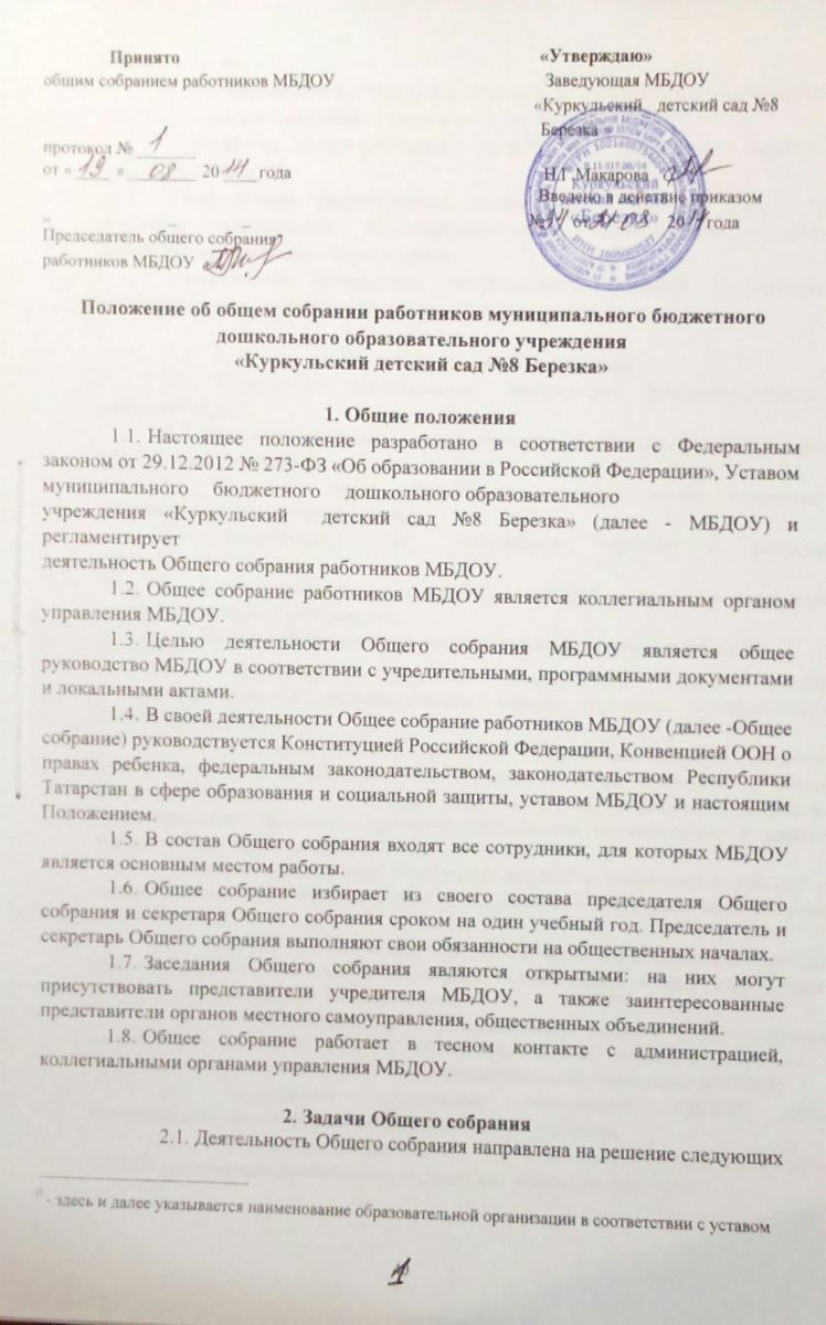 Положение об общем собрании работников