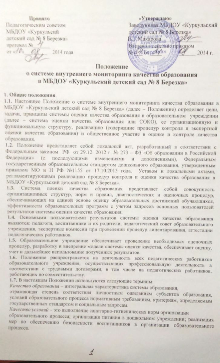 Положение о системе внутреннего мониторинга качества образования