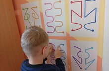 На нашей стене вы можете увидеть яркий и интересный уголок развития, посвященный нейрогимнастике. Здесь приклеены изображения кулачка и ладошки, а также разнообразные наклейки, иллюстрирующие простые и эффективные упражнения нейрогимнастики. Эти упражнения легко интегрировать в режимные моменты в течение дня.