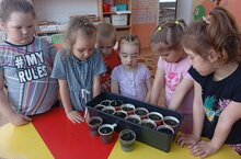 Дошкольники аккуратно наполняли стаканчики землей, копировали томаты, перцы и посадили лук.