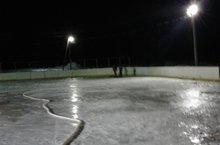 Наша школа готовится в сезону хоккея. Заливаем каток.