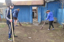 Началась "Весенняя неделя добра" и наши тимуровцы посещают труженников тыла и помогают им в уборке территории