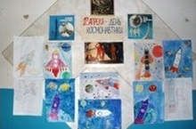 В этом году исполнилось 50 лет, как впервые человек отправился в космос. Это был Юрий Алексеевич Гагарин. Им гордится вся страна. Наши ребята тоже не остались в стороне. В этот день у нас в школе была организована выставка рисунков, прошли классные часы.