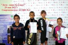 29 мая 2012 года в пгт. Алексеевское состоялись мероприятия, приуроченные к Международному Дню детей, в рамках мероприятия проводились спортивные соревнования по бадминтону. От нашей школы по рукодством тренера по бадминтону Матвеева А.Н. принимали участие 4 ученика и вернулись с такими результатами: Шабутдинова А - 1 место, Ермаков Максим - 1 место, Шафикова Алина - 3 место.
