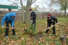 18 октября провели республиканский субботник по очистке территории школы. Посадили 10 елей и 7 кустарников смородины.