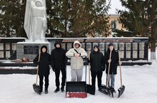 Студенты Алексеевского аграрного колледжа очистили Парк Победы от снега.