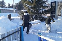 Акция " Твори добро." В рамках военно- патриотического месячника Юнармейцы нашей школы очистили от снега памятник воинам- односельчанам.