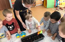В первой группе раннего возраста «Лучики» проводилась игра «Шарик в ложке»....