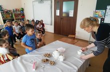 2 сентября, ребята из первой группы раннего возраста «Лучики» знакомились с игрушкой- медведь. Рассматривали игрушку, отвечали на вопросы воспитателя, показывали, где находятся глазки, ушки, носик....
