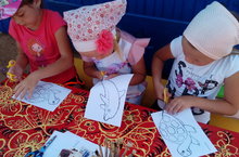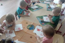 Маленькие художники второй младшей группы «Непоседы» 4 августа, в ходе режимного момента в первой половине дня, первый раз рисовали ладошкой лучики. ...