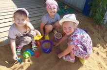 Игры с песком для воспитанников младшей группы «Звездочки» - это не только веселое времяпрепровождение, это простые полезные упражнения, которые помогают учиться и развиваться.В такой игре можно придумать великое множество увлекательных построек, игр, сюжетов. Детям достаточно одной лопатки или совочка. Взаимодействуя с песком, ребенок проявляет чудеса фантазии. Он включается в игру всем своим существом- эмоционально, физически, психически. При этом создаются благоприятные условия для проявления у детей концентрации внимания, любознательности, увлеченности.....