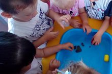В группе раннего возраста №1 «Затейники» 7 августа в режимном моменте, в совместной деятельности детей и педагога, дети научились пользоваться сачком для вылавливания предметов разной формы и величины из воды.