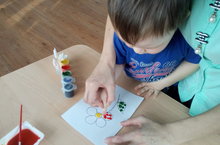 В группе раннего возраста №1 «Затейники» дети совместно с воспитателем Арслановой А.И. рисовали цветок, используя нетрадиционную технику – пальчиковое рисование.