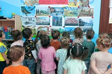 Накануне праздника Дня Победы маленькие воспитанники второй группы раннего возраста «Лучики» впервые узнали об этом празднике, его символах и традициях. Ребята с интересом рассматривали тематическую выставку иллюстраций, посвященных Великой Отечественной войне и Дню Победы. Малыши примерили солдатскую гимнастерку и пилотки, познакомились с одним из символов Победы- георгиевской лентой, и выполнили коллективную аппликацию «Звезды Победы».....