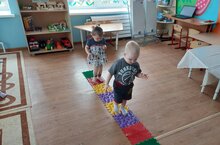 Для профилактики плоскостопия у детей первой группы раннего возраста «Звездочки» мы используем резиновые коврики с разной фактурой. По коврикам малыши ходят босиком или в носочках, в режиме дня, до и после дневного сна...