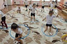 Воспитанники подготовительной к школе группы «Непоседы» выполняли ряд упражнений с обручем: крутили на талии, на руке, катали его вперед и пролезали через него. Упражнения с обручем помогают развивать гибкость, ловкость, хорошую координацию движений, а если выполнять эти упражнения под веселую музыку, то улучшится чувство ритма и поднимется хорошее настроение!..