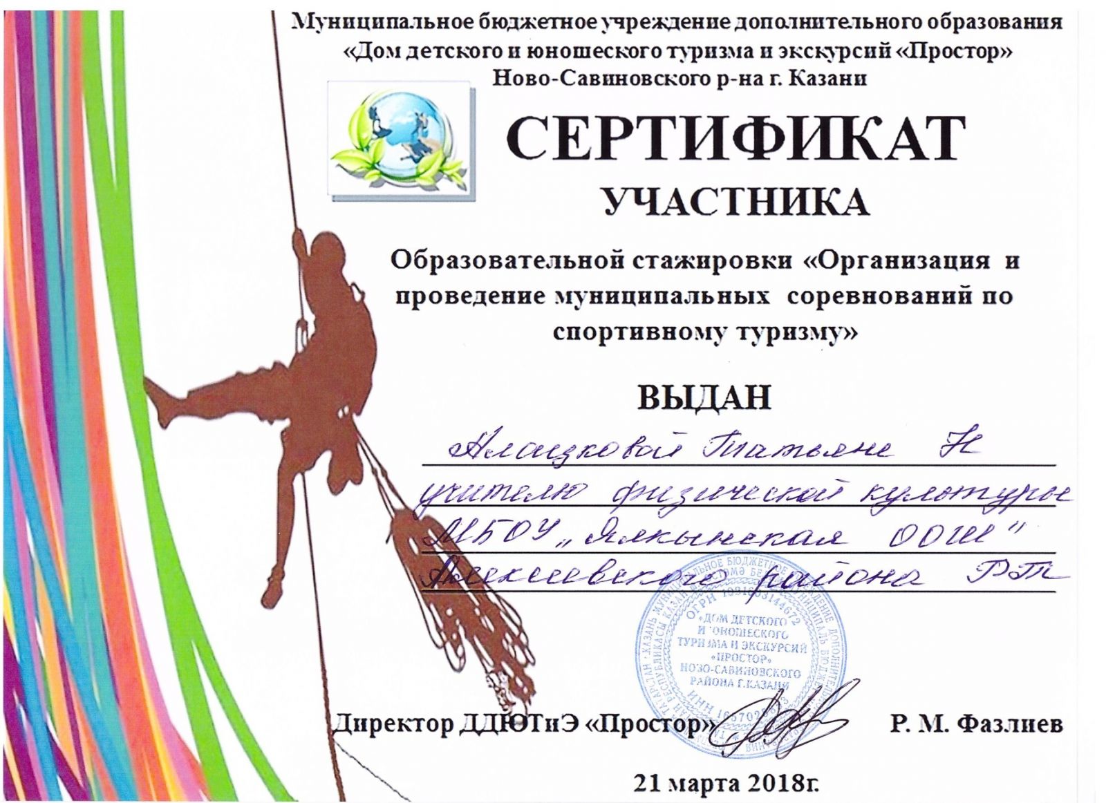 Сертификат стажировка Организация учебно-тренировочного процесса по спортивному ориентировапнию.png