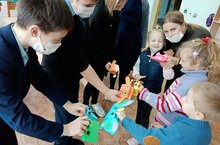 21.01. состоялась акция "Дети детям". Учащиеся школы посетили детский сад. Подарили театральные игрушки сделанные своими руками.