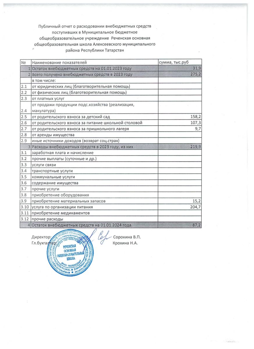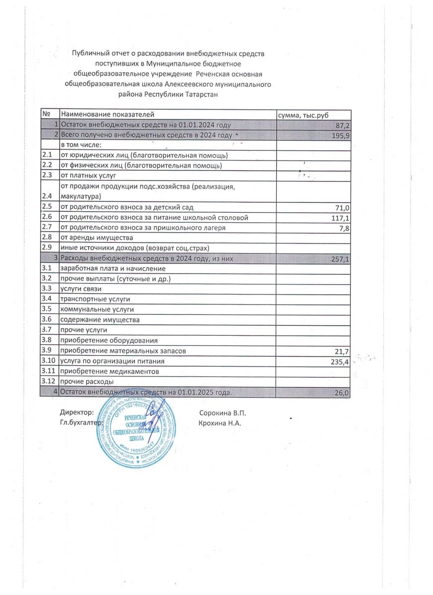 Публичный отчет о расходовании внебюджетных средств за 2024 гогд