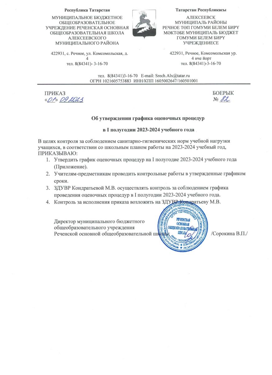 Приказ об утверждении графика проведения оценочных процедур на 1 полугодие 2023-2024 уч.года