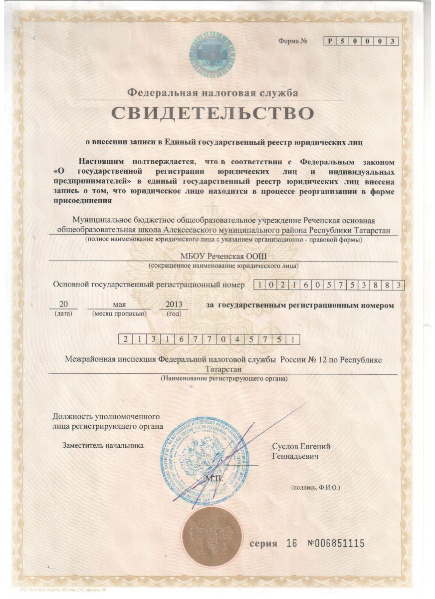 Муниципальное бюджетное общеобразовательное учреждение Реченская основная общеобразовательная школа Алексеевского муниципального района Республики Татарстан/Татарстан Республикасы Алексеевск муниципаль районы Речное төп гомуми белем бирү мәктәбе муниципаль бюджет гомуми белем бирү учреждениесе
