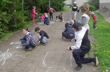 Сегодня начал работу пришкольный оздоровительный лагерь "Муравейник". По традиции в День защиты детей проходит конкурс рисунков на асфальте.