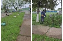 06 мая 2025 года в преддверии праздника Дня Победы работники школы привели территорию школьного двора в порядок, скосили подросшую траву.