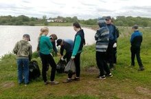Учащиеся школы приняли участие в акции"Чистые берега". Они прошли по берегу реки, собрав весь мусор.