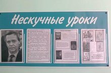 В кабинете русского языка и литературы оформлен информационный стенд, посвященный 80-летию со дня рождения Валентина Григорьевича Распутина, в котором размещены портрет писателя, информация о его жизни и творчестве, а также рекомендации книг для чтения и иллюстрации к рассказу «Уроки французского», входящего в школьную программу по литературе 6 класса.