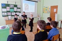 Каждый год 15 февраля, в день рождения Мусы Джалиля, в школе проводятся различные мероприятия. Вот и сегодня прошёл литературный час «Подвиг во имя Родины». Учащиеся начальных классов с интересом слушали рассказ учителя татарского языка и литературы о том, где родился и вырос Муса Джалиль, с какого времени начал писать стихи. Рассказ сопровождался презентацией, в ходе которой ребята узнали не только о его биографии, но и о его героической и трагической судьбе. Дети выразительно читали его стихотворения. Больше всего понравилось стихотворение «Храбрый заяц», которое ученики с удовольствием проинсценировали . В конце мероприятия ребята познакомились с выставкой книг М Джалиля и рассмотрели иллюстрации к произведениям.