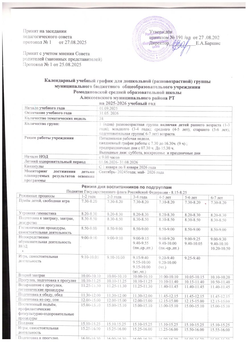 Календарный учебный график дошкольной группы 2023-2024 уч.год