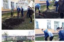 В школе в рамках Всероссийского экологического субботника "Зеленая Россия" учащиеся 9 класса посадили деревья.