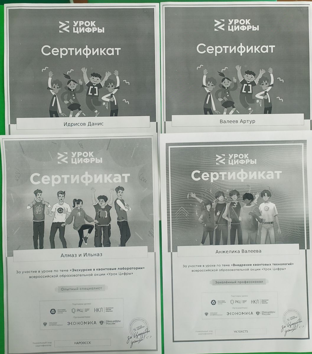 Сегодня в рамках всероссийского образовательного проекта «Урок цифры» для учащихся 5-9 классов был проведен очередной урок по теме «Город будущего: как квантовые технологии меняют нашу жизнь», направленный на развитие ключевых компетенций цифровой экономики у школьников, ознакомление обучающихся с применением квантовых вычислений, коммуникаций и сенсоров в повседневной жизни, а также с новыми специальностями в области квантовых технологий и обучением. Наши учащиеся попробовали свои силы в решении заданий в предложенной теме и получили сертификаты