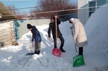 Учащиеся МБОУ Степношенталинской ООШ помогли семье мобилизованного. Они почистили снег во дворе дома и за двором.