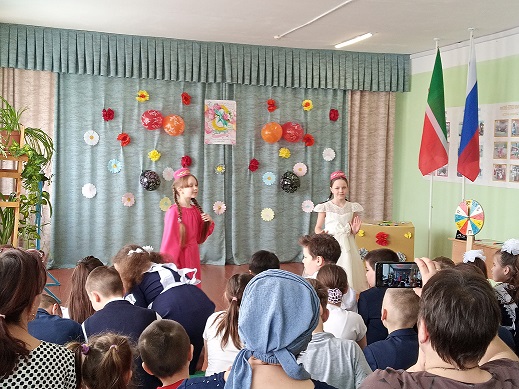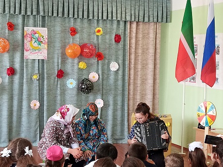 Бүген мәктәпкәчә яшьтәге балалар төркемендә бәйрәмгә әтиләр дә,әниләр дә килгән иде.Алар үзләренең осталыкларын да күрсәтте,балалар белән бергәләп җырлап - биеп тә алды.Бәйрәм күңелле узды!