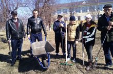 В рамках акции учащиеся и сотрудники школы убирали территорию от мусора.