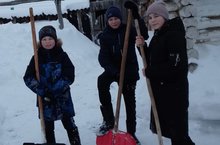 Юнармейцы продолжают помогать пожилым,одиноким пенсионерам.Сегодня они почистили территорию дома от снега одинокой пенсионерки.