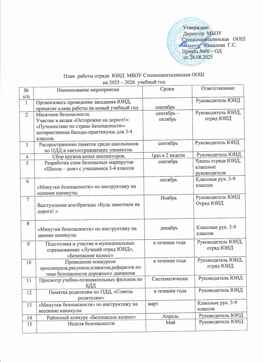 План работы отряда ЮИД на 2025-2026 учебный год