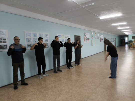 Укучылар мәктәпкә җыелу белән, ашханәдә ашар алдыннан физкультура күнекмәләре ясап алдылар.