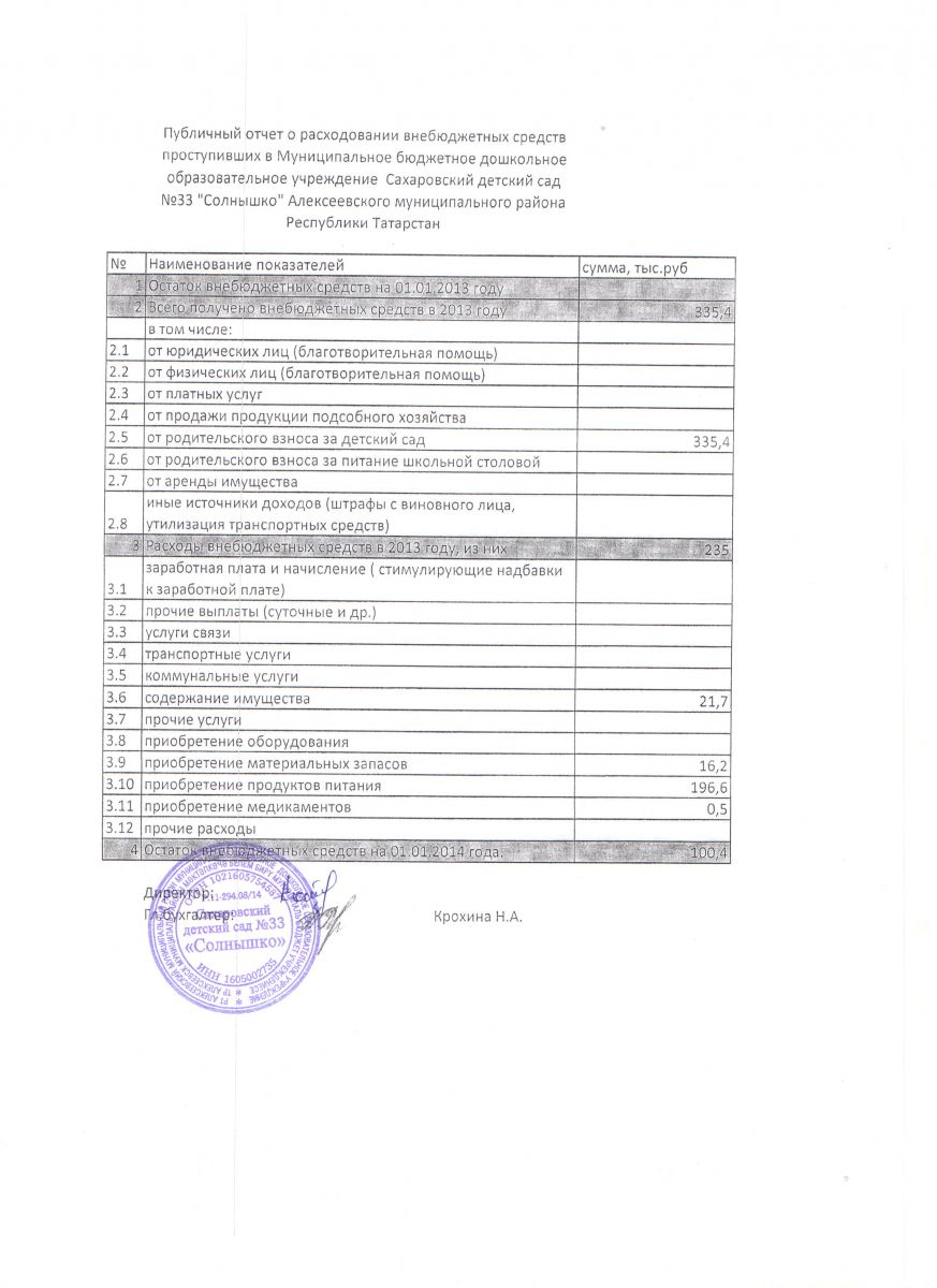 Публичный отчет о расходовании внебюджетных средств 2013