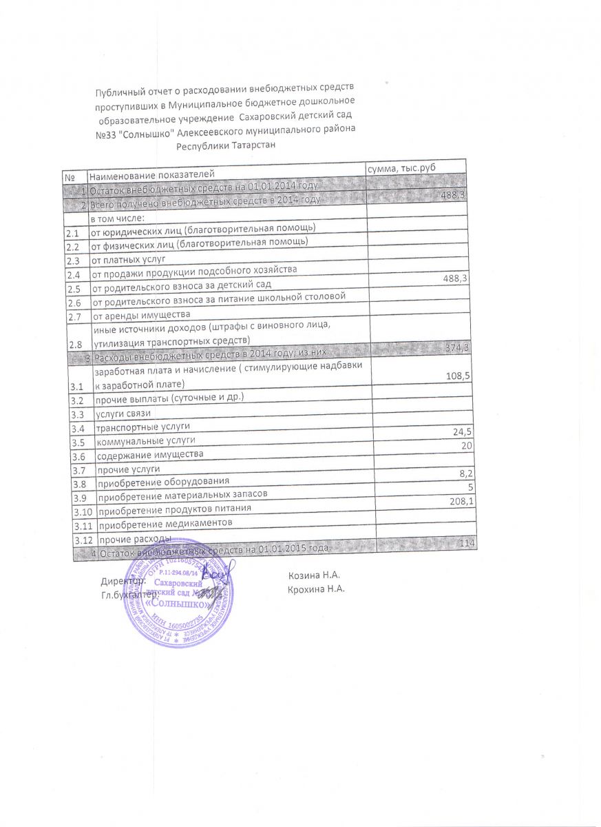 Публичный отчет о расходовании внебюджетных средств 2014