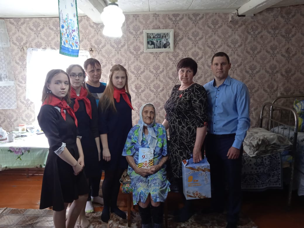 Отряд юнармейцев в предверии праздника Дню победы , совместно с представителями сельского совета , посетили тружеников тыла во время ВОВ Каплину Лидию Николаевну и Лисину Антонину Илларионовну , передали им поздравительные открытки и подарки от главы государства.