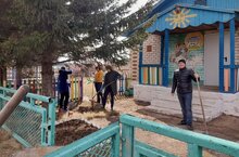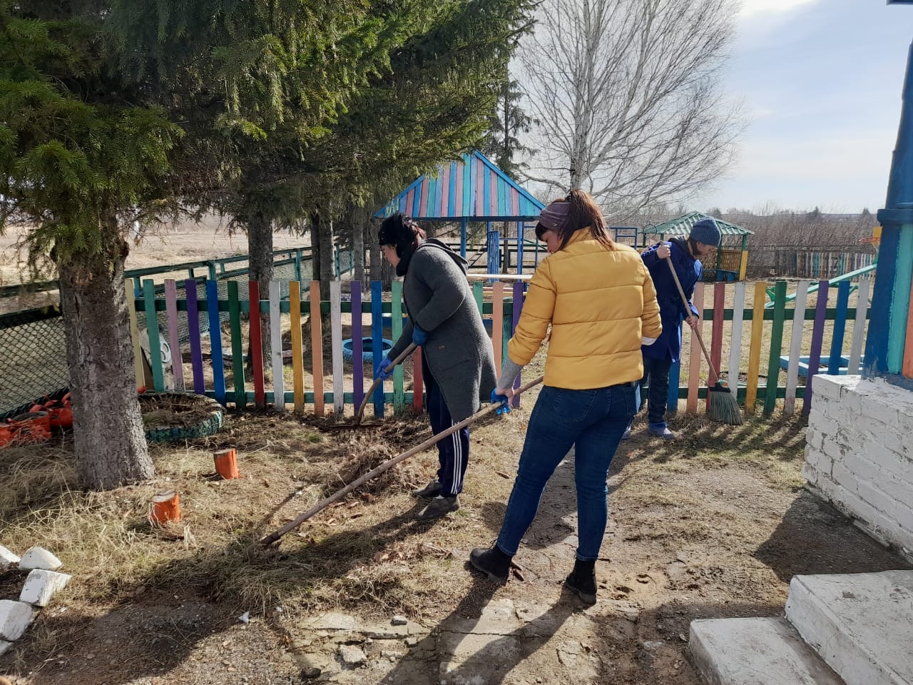 Сегодня сотрудники Сахаровской школы и детского сада Солнышко вновь вышли на субботник , чтобы привести в порядок свое село .