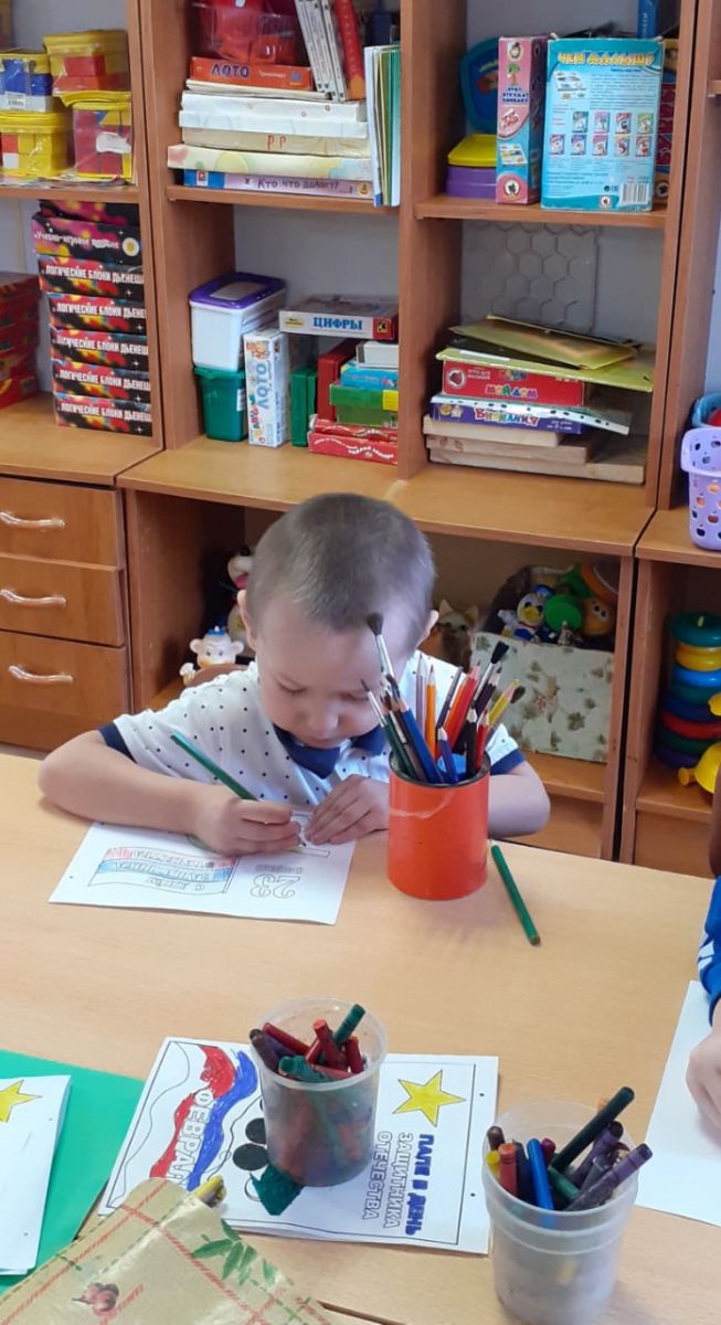В дошкольной группе Сахаровской ООШ ребята изготовили открытки для солдата .