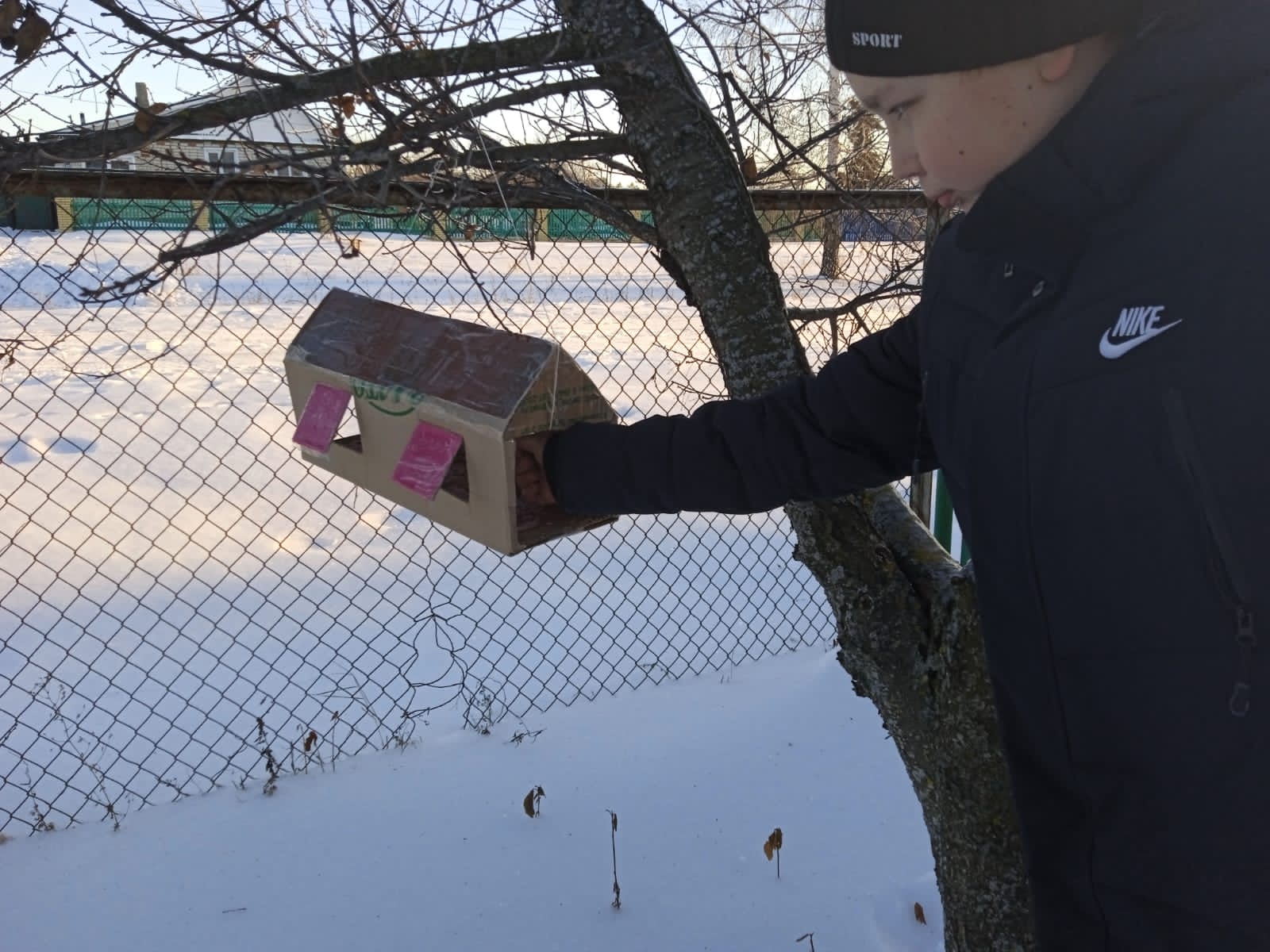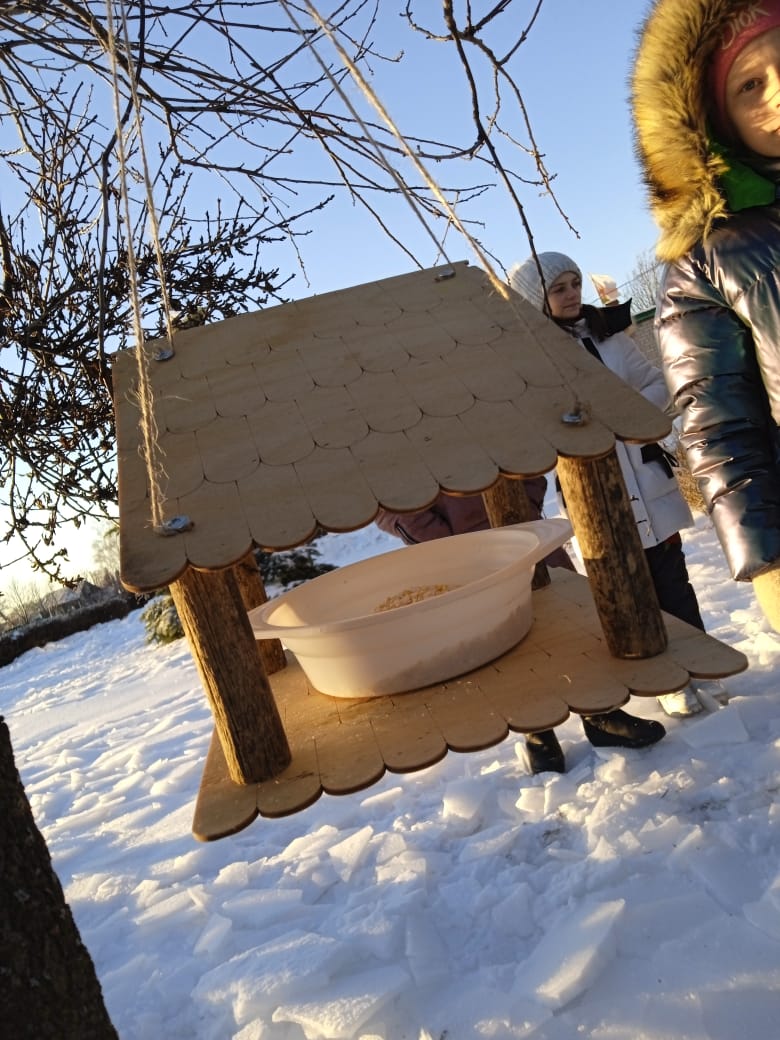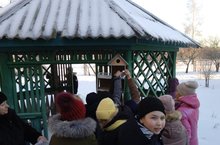 Продолжается акция "Кормушки для пичужки" учащиеся 5 класса в школьном саду повесили новые кормушки.